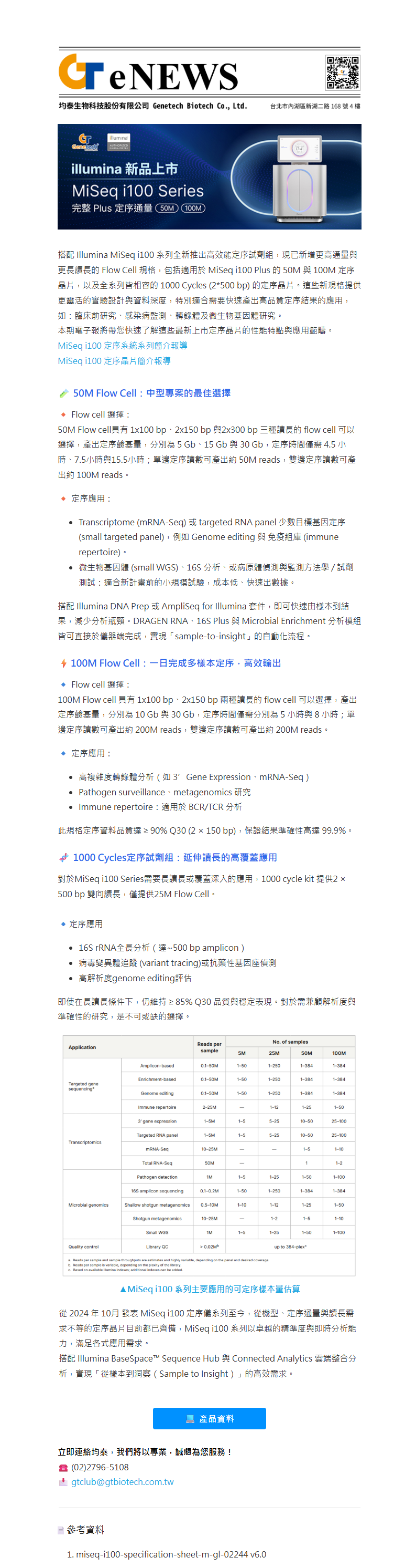 ✨【illumina新品上市】MiSeq i100 Series-完整Plus定序通量 50M / 100M