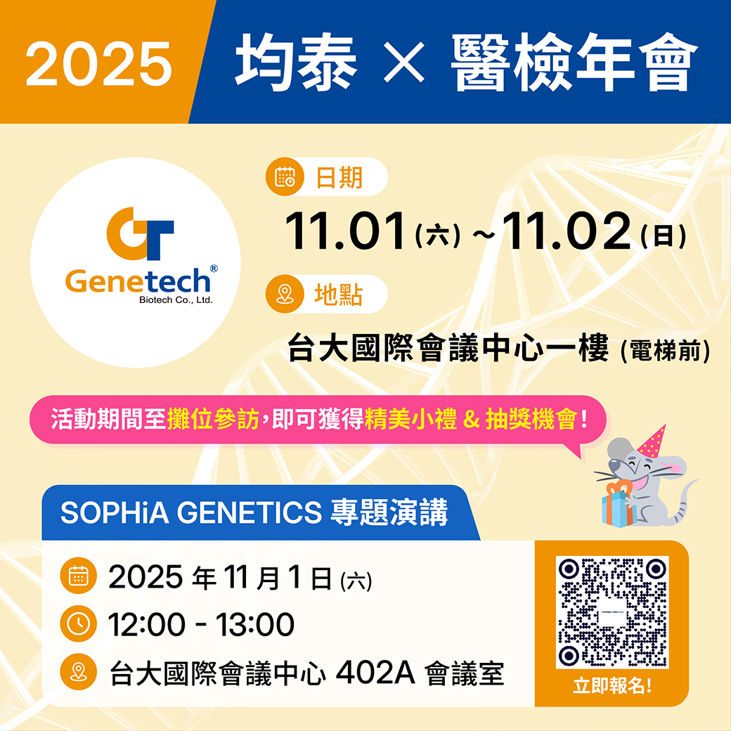 Copyright © 2020 均泰生物科技股份有限公司 Genetech Biotech.