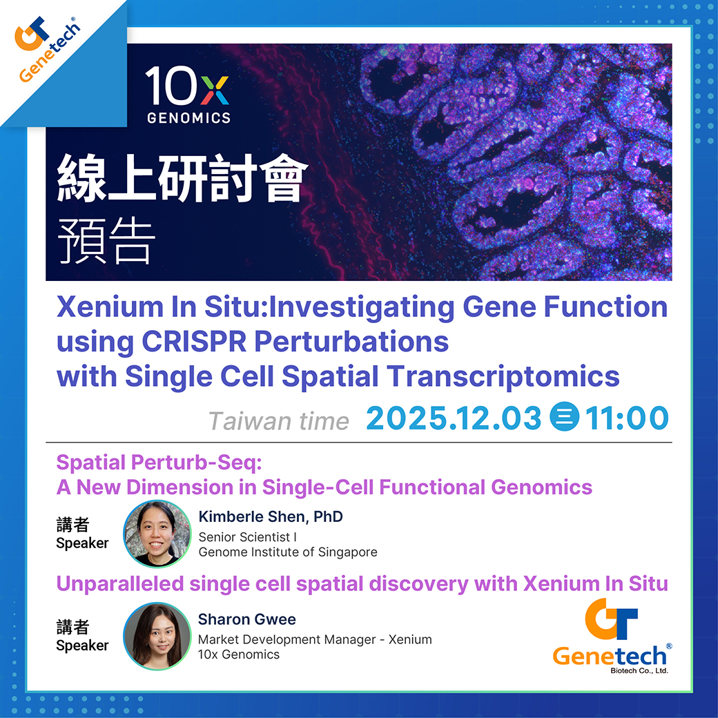 本次研討會將介紹 Xenium In Situ 產品,並邀請新加坡基因體研究院的 Dr. Kimberle Shen 進行專題演講,探討如何利用 Spatial Perturb-Seq 推動單細胞功能基因體學研究進展。在目前 GWAS 的研究中驗證變異位點的速度遠不及發現速度,形成所謂的『變異至功能落差』(variant-to-function gap),功能基因體學雖是研究基因功能的黃金標準,但缺乏空間資訊。